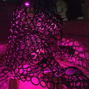 We - and when I say "we" I mean my husband, Will! - chose to reduce the power (they will be running on solar power) required to light the sculptures and make them purr. In addition to fewer lights, we changed our controllers and sound cards to ones that use less power.